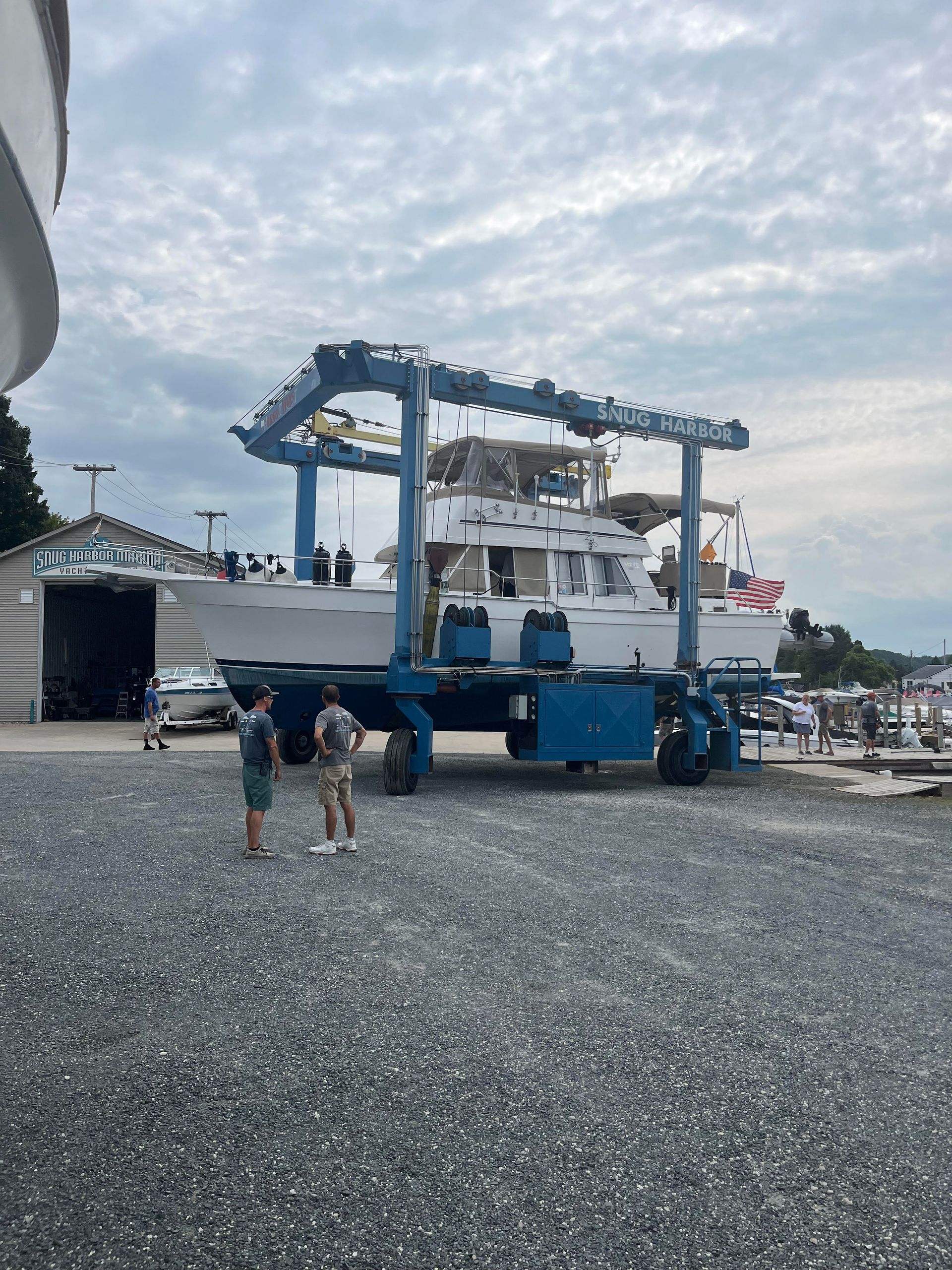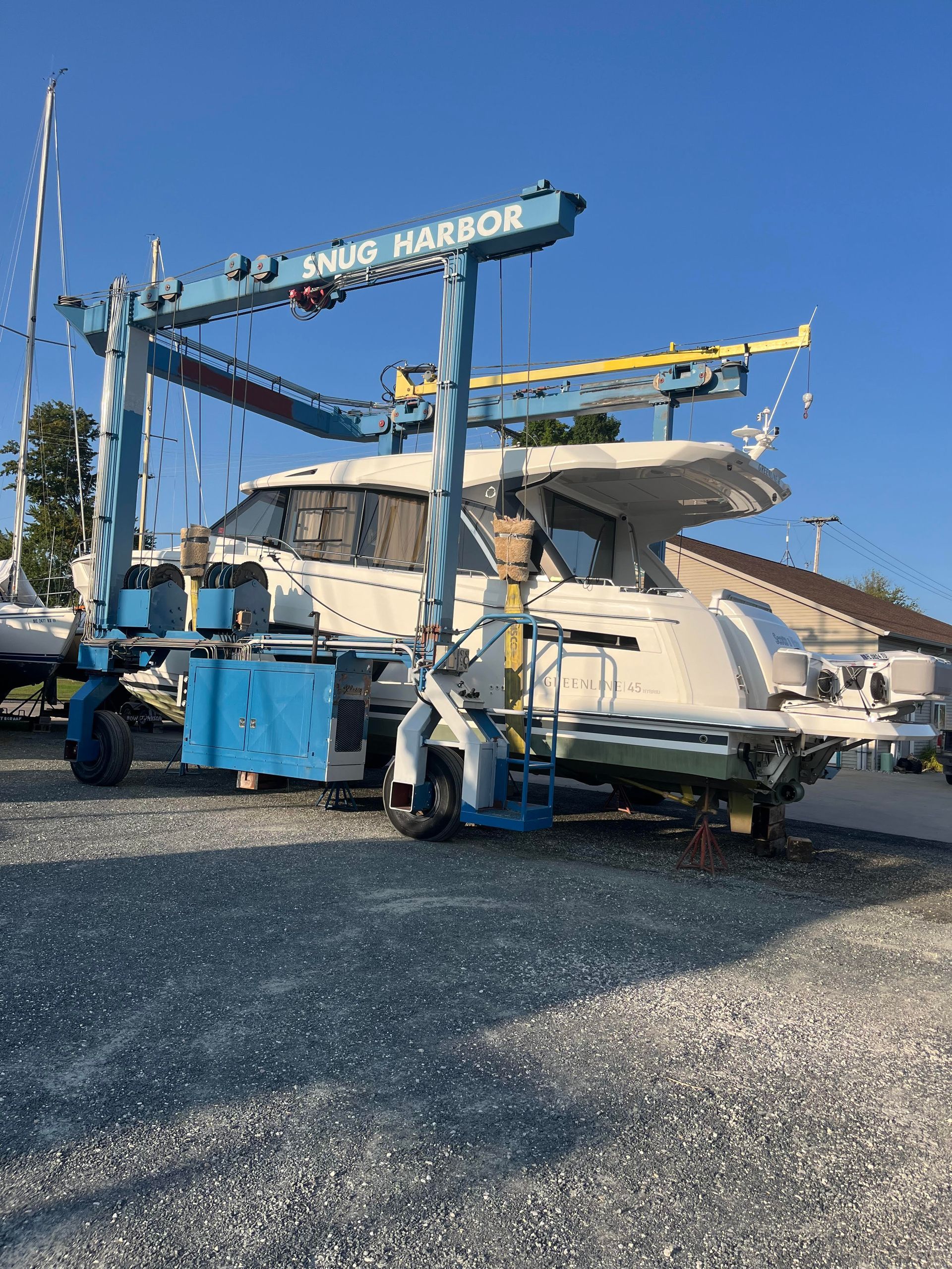 Snug Harbor Marina has a state of the art 35 Ton Kleeco Marine travel lift. The lift is computerized, and radio controlled. The lift was custom built to handle large sailboats to be hauled with their mast up without having to adjust the rigging to be lifted. Snug Harbors lift operator has 30 years' experience hauling all type of vessels. When it comes to having your boat lifted, Snug Harbor Marina should be your choice.
